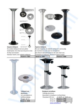 tafelbevestiging Vloerplaat 220 mm. H: 50/75 of 34/51 cm.