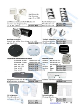 Kleur wit 170 Bestel nr. 2764 RVS RVS Bestel nr. 5105